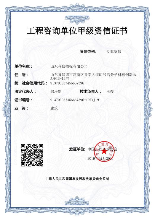 山東齊信招標有限公司通過了本次評價的審核,取得了工程咨詢單位甲級專業資信證書,期間凝聚了公司領導的支持與關懷、相關部門的協作與進取、組織人員的認真與詳實,團結就是力量在我們齊信大家庭中體現的淋漓盡致。此次成績的取得彰顯了公司在國內同行中的較高水平!