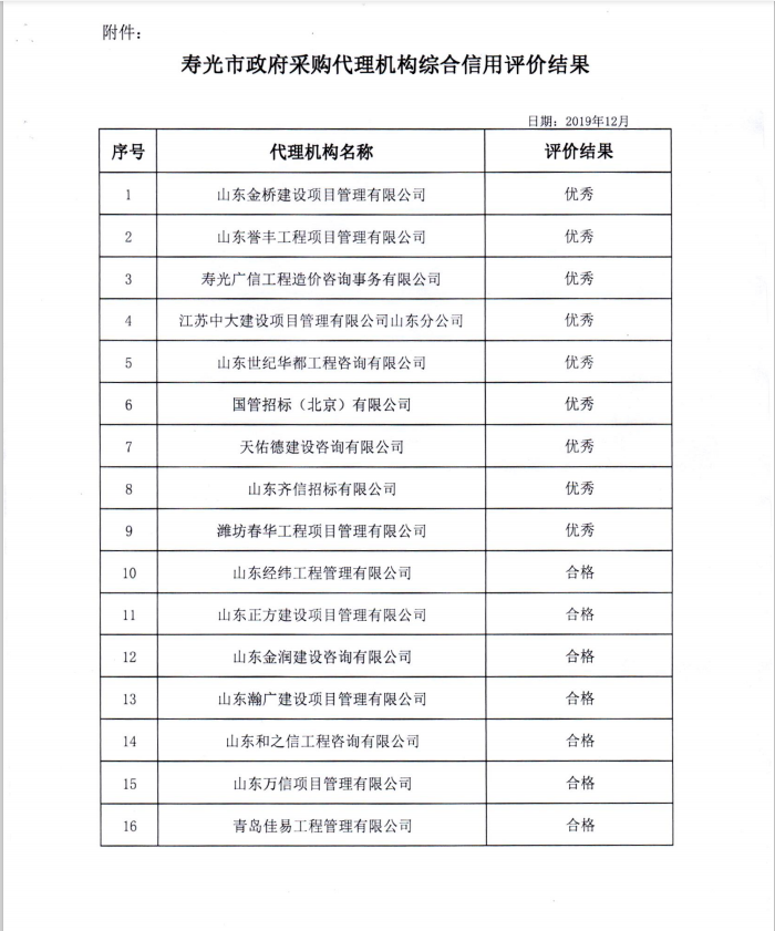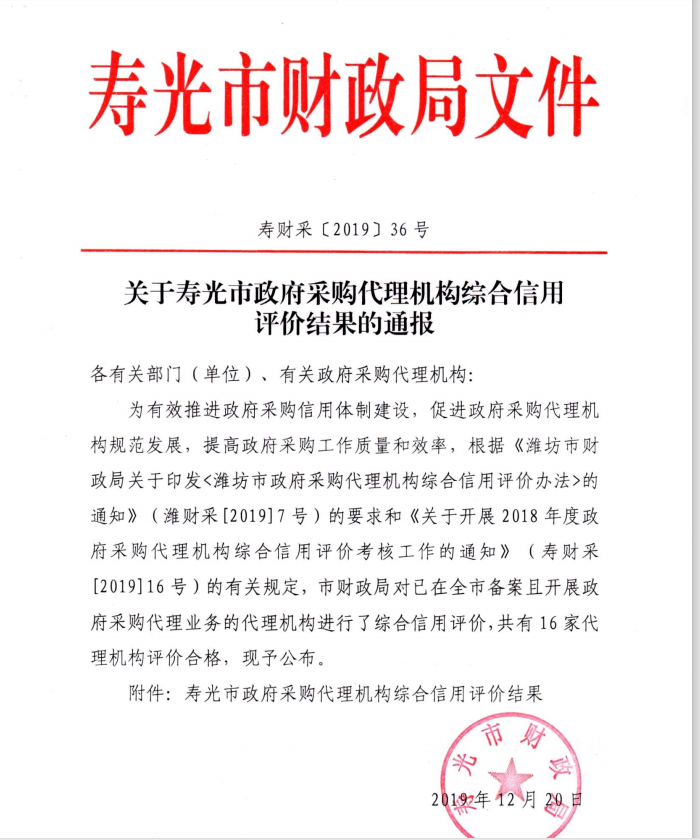 日前,壽光財政局開展了壽光市政府采購代理機構綜合信用評價工作,經過筆試等評審環節后,我公司獲得優秀等級。榮譽的取得既是對公司的肯定,也是對公司的鞭策,我們公司將繼續秉承齊信公司“好服務,為卓越”的服務理念,進一步提高從業人員的專業技能水平,為推動招標代理行業持續健康發展做出更大貢獻。