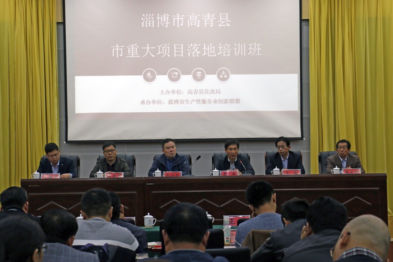 目前,市重大項目落地培訓相繼展開,繼桓臺、高新區、周村之后,公司作為淄博市生產性服務創新聯盟盟主單位于2017年10月26日,為高青縣舉行重大項目落地培訓。