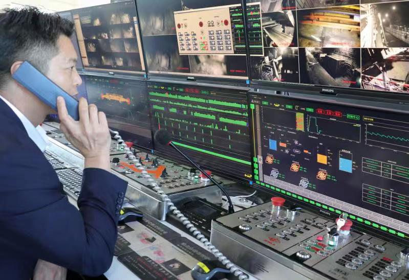 “我是去年10月份從井下機電檢修工轉(zhuǎn)行到礦地面綜采智能化控制中心當(dāng)操作員的。”張兵介紹道,信湖礦818工作面目前已建成了液壓支架電液控、智能控制、智能集中供液、采煤機控制、運輸設(shè)備控制、視頻監(jiān)控等六大系統(tǒng),實現(xiàn)了遠程“一鍵啟停”、自動記憶割煤、故障自診斷、液壓支架自動跟機移架、工作面人員高精度感知與定位等功能。井下通過每隔50米布置一臺基站,實現(xiàn)了移動目標(biāo)、控制信息、監(jiān)測信息、視頻信息等穩(wěn)定可靠傳輸。以前該綜采面2名煤機司機、6名移架工共8人的活,現(xiàn)在1名地面遠程控制操作員、3名安全巡視員共4人即可完成。