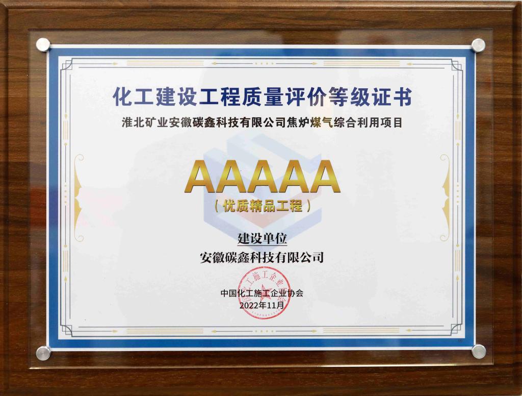 近日,2022年化工建設(shè)工程質(zhì)量評(píng)價(jià)結(jié)果出爐,安徽碳鑫科技有限公司焦?fàn)t煤氣綜合利用項(xiàng)目獲評(píng)2022年全國(guó)化工行業(yè)工程質(zhì)量建設(shè)的最高榮譽(yù)——5A級(jí)優(yōu)質(zhì)精品工程。