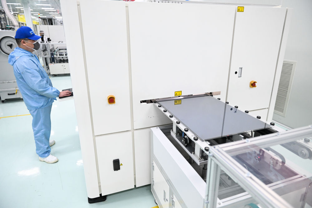 2024年2月29日,在位于江蘇省無錫市錫山區(qū)的極電光能有限公司智能生產(chǎn)車間,鈣鈦礦光伏組件正在自動(dòng)化生產(chǎn)線上進(jìn)行激光劃刻工藝。新華社記者 季春鵬 攝