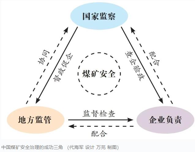 “國家監察、地方監管、企業負責”,搭建起煤礦領域大安全大應急的框架,既是應急管理組織理論的重大創新,也是法治化建設的最新成果。三者在煤礦安全治理中扮演不同角色,相互聯系、相互作用,共同構成了煤礦安全治理不可分割的重要組成部分。