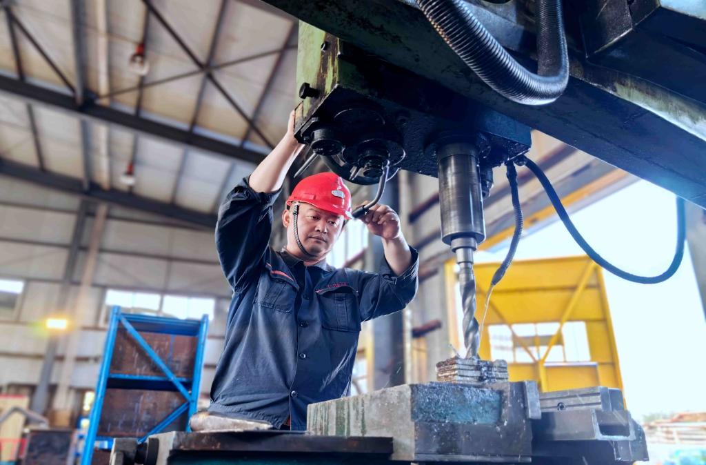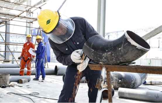 “十四五”專(zhuān)班PBAT項(xiàng)目一名工人在加工彎管。