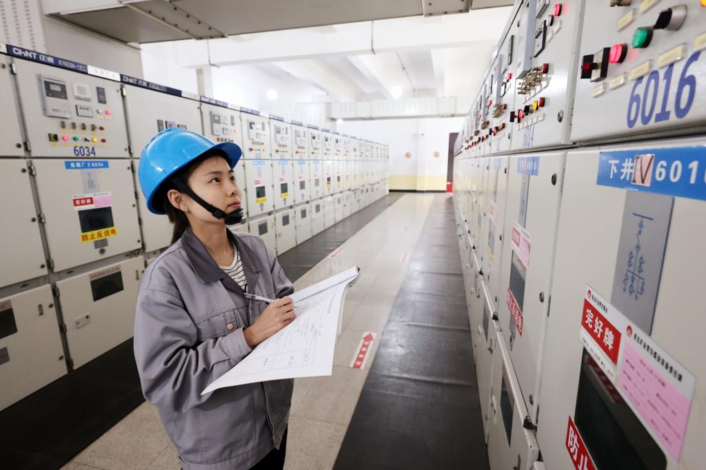 熱電分公司生產(chǎn)技術(shù)科科長(zhǎng)劉國(guó)中在中控室檢查生產(chǎn)數(shù)據(jù)。