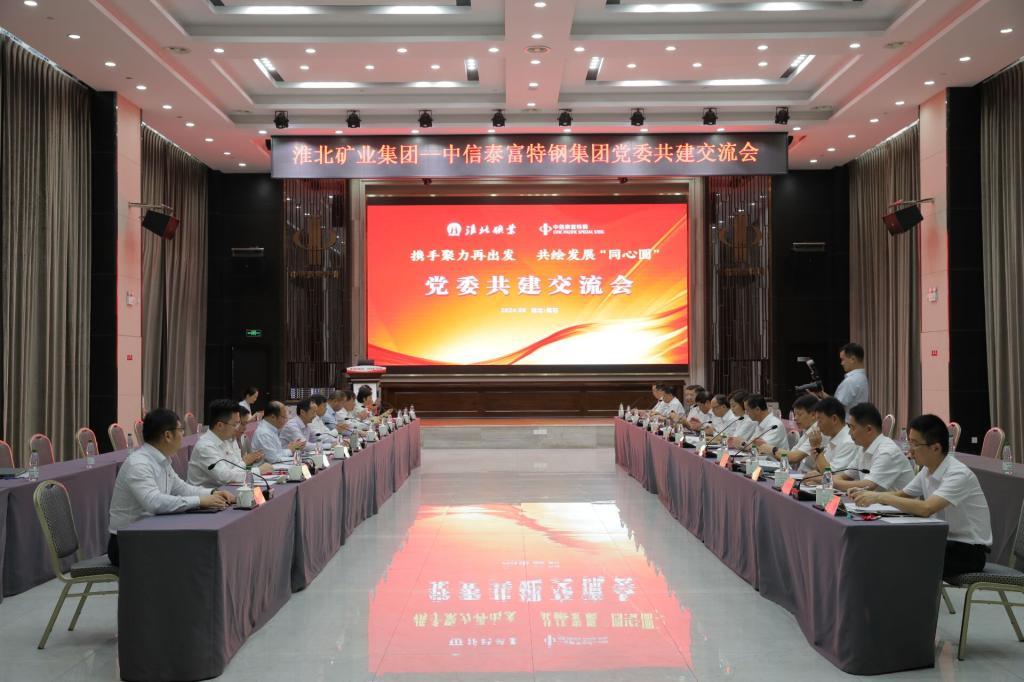 8月23日,淮北礦業集團與中信泰富特鋼集團舉辦黨委共建暨商務技術交流會。淮北礦業集團黨委書記、董事長方良才,集團黨委常委、紀委書記汪琳,集團工會第一副主席劉杰,淮北礦業副總經理劉杰;中信泰富黨委副書記、總裁,特鋼集團黨委書記、董事長錢剛;中信泰富黨委委員、副總裁,新力能源黨委書記、董事長李國忠;特鋼集團黨委副書記、工會主席郟靜洪,特鋼集團黨委常委、紀委書記丁民東等出席會議。