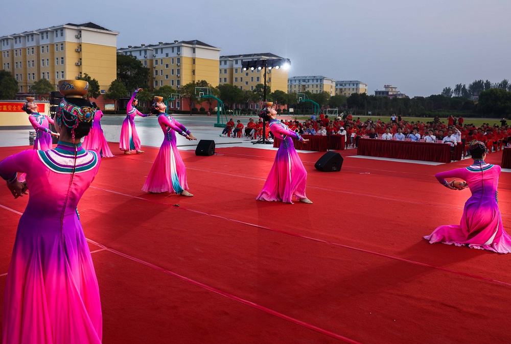 演出在舞蹈《鼓舞神州》中拉開序幕,隨后男女聲二重唱《新萬泉河水》、相聲《機智問答》、魔術(shù)《快樂十分》、京劇《武家坡》、小品《金錢與孝子》等節(jié)目輪番上演。一首首膾炙人口的歌曲,一段段婉轉(zhuǎn)悠揚的旋律,一支支優(yōu)美多姿的舞蹈,讓現(xiàn)場觀眾沉浸在歡樂的氛圍中。臺上演員們?nèi)橥度耄_下觀眾積極互動,或跟唱歌曲,或打著節(jié)拍,現(xiàn)場氣氛融融。最后,演出在歌曲《奮斗吧追夢人》中圓滿落下帷幕。